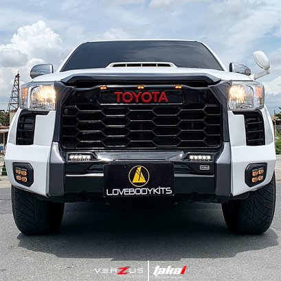 Front bumper TUNDRA for Toyota REVO 2020-2022 : Made from ABS plastic the set consist of 1pc Front Bumper + 2pcs Daytime Running Light + 1pc LED Bar + 3pcs LED Yellow Light.