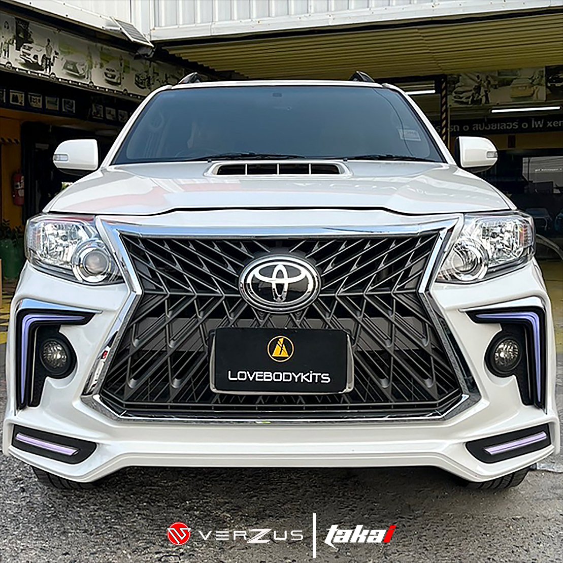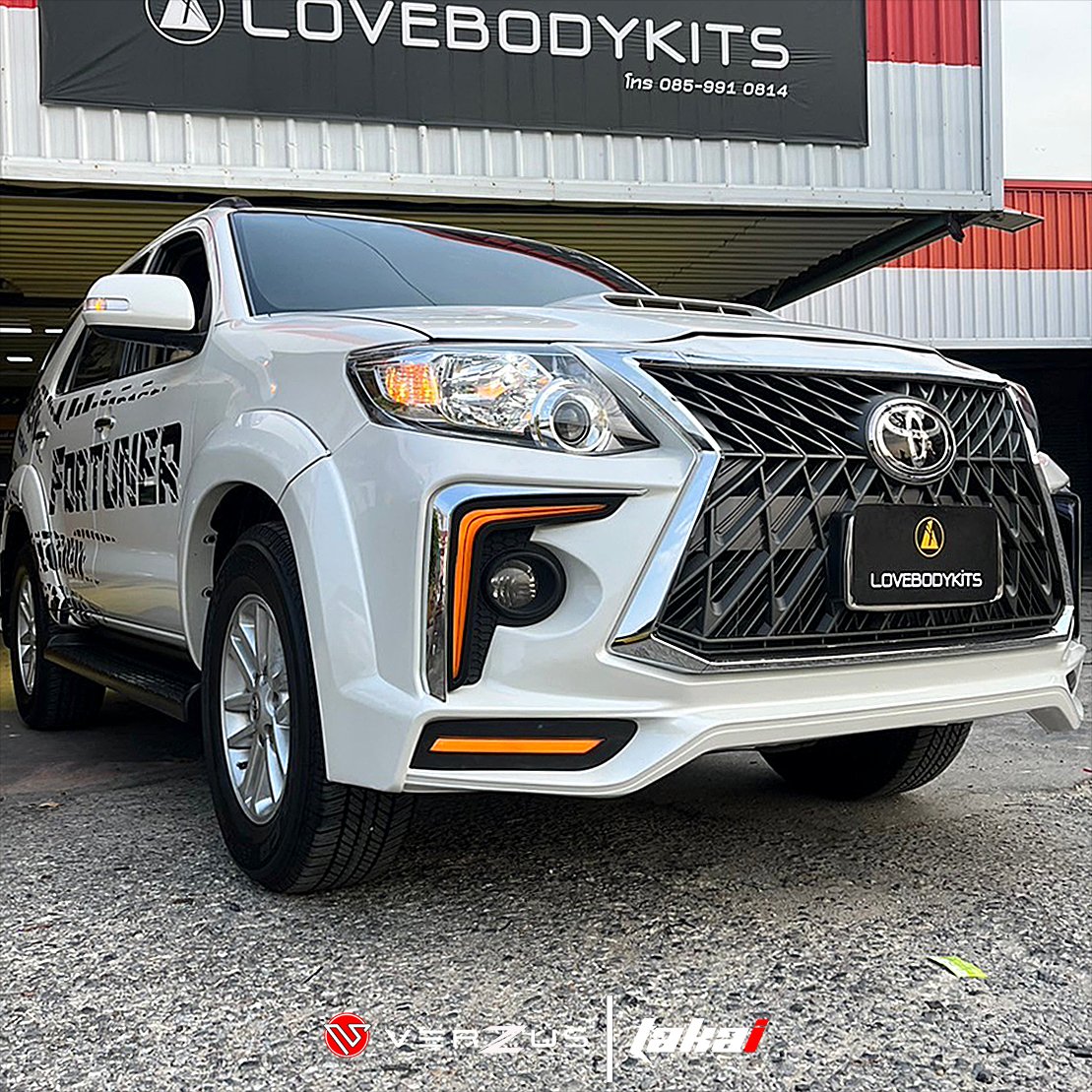 Front bumper LX STYLE for Toyota FORTUNER 2012-2014 : Made from ABS plastic the set consist of 1pc Front Bumper + 2pcs Daytime Running Light + 1pc LED Bar + 3pcs LED Yellow Light.